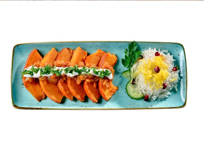 Unser Safran-Hähnchenspieß mit Basmati-Reis ist ein köstliches und aromatisches Gericht, das aus saftigen marinierten Hähnchenstücken und duftendem Basmati-Reis besteht. Jeder Hähnchenspieß wird sorgfältig mit Safran und einer Mischung aus aromatischen Gewürzen und Kräutern mariniert, die dem Gericht einen unverwechselbaren Geschmack verleihen. Unser Safran-Hähnchenspieß mit Basmati-Reis ist reich an Proteinen, Ballaststoffen und Nährstoffen und eignet sich perfekt als Hauptgericht für ein festliches Abendessen oder für ein schnelles Mittagessen. Der Basmati-Reis ist von höchster Qualität und wird auf traditionelle Weise gekocht, um sicherzustellen, dass er flauschig und duftend bleibt.