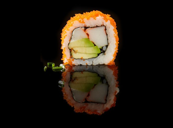 Surimi, Avocado und Frischkäse mit Tobiko verziert (8PCS)