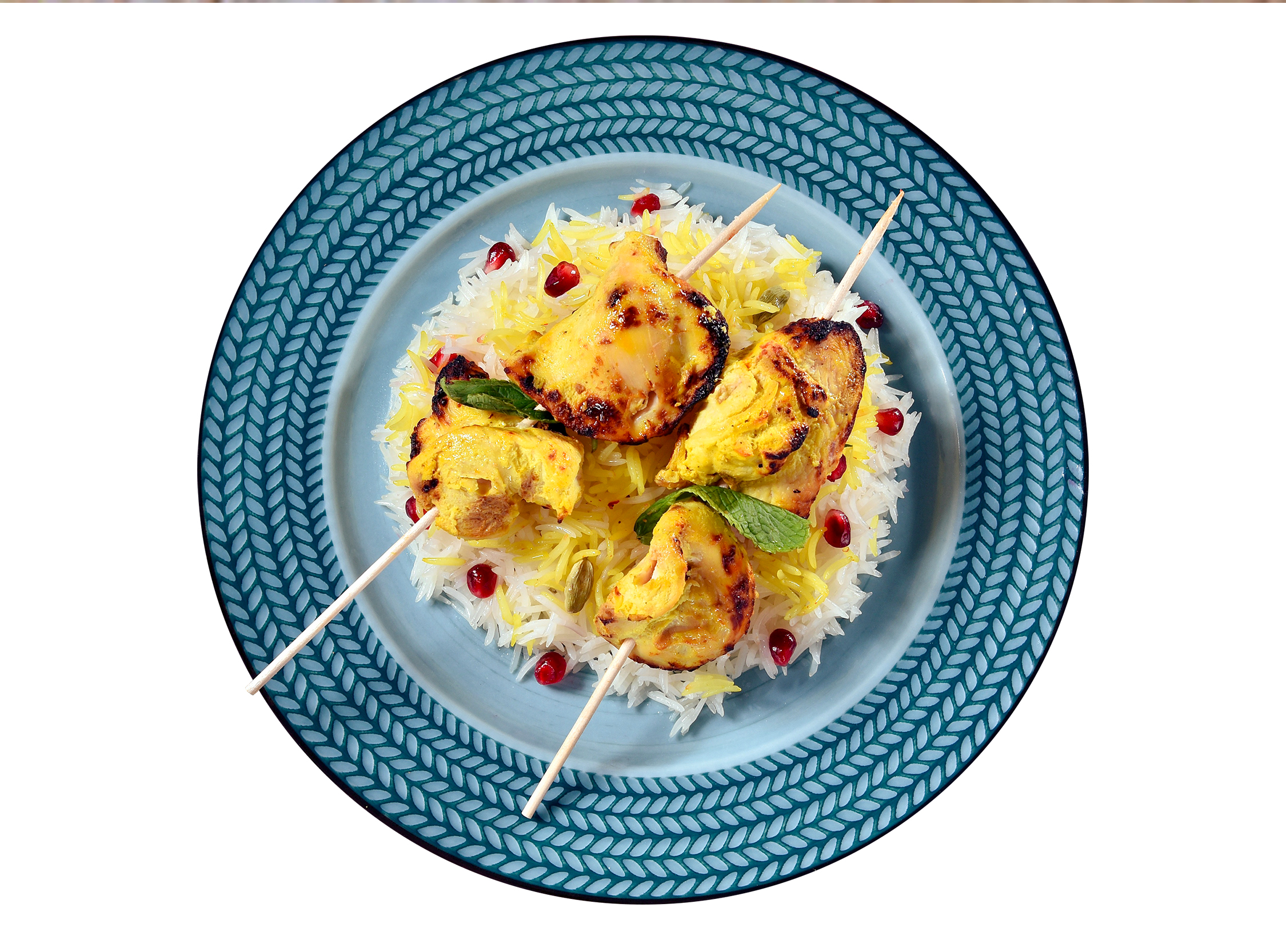 Startseite Fingerfood Safran Hähnchenspieße mit Basmatireis